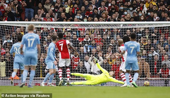 Trong khi đó, Arsenal liên tục có những pha phản công sắc sảo với tốc độ không cao nhưng có sự chính xác trong từng đường bóng. Martinelli có rất nhiều cơ hội trong hiệp 1 nhưng anh lại tỏ ra vô duyên trước khung thành Ederson.