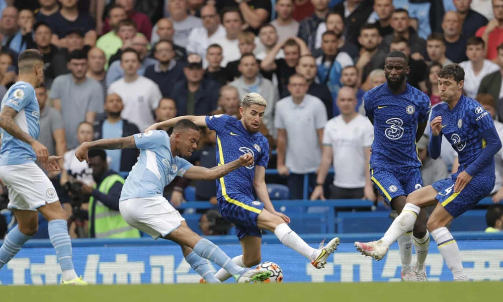 Trước lối chơi chặt chẽ của Chelsea, đội khách “Man Xanh” chỉ còn cách tung ra những cú sút xa, và đến phút 41 cơ hội rõ rệt đến với Man. City khi Foden có pha bấm bóng cho Grabiel Jesus đỡ ngực dứt điểm trong vòng cấm, nhưng cú sút của tiền đạo người Brazil lại đi vọt xà ngang. Kết thúc hiệp một, trận đại chiến Chelsea - Man. City hòa nhau không bàn thắng.