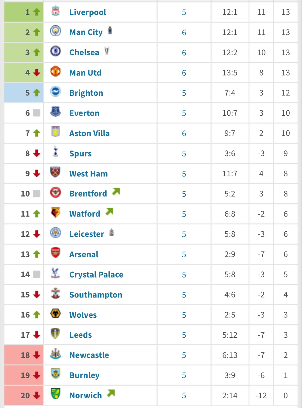 Với kết quả Chelsea thua Man. City 0-1 và MU thua Aston Villa với tỷ số tương tự, Liverpool bất chiến tự nhiên thành vươn lên chiếm ngôi đầu bảng Premier League. Vào lúc 23h30 đêm nay (25-9), thầy trò Jurgen Klopp sẽ đến làm khách trên sân của tân binh Brentford.
