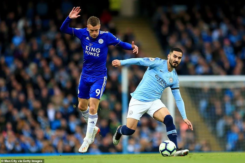 Các pha tấn công của đội khách chủ yếu đến từ những miếng đánh tốc độ ở hành lang hai cánh trước khi tạt vào trong là Vardy hoàn thành nốt phần còn lại của nhiệm vụ tạo cú sốc ngay trên SVĐ Etihad của “man xanh”. Nhưng hàng phòng ngự của Man. City vẫn tập trung thi đấu dưới sự chỉ đạo của đội trưởng Kompany để bẻ gãy những đợt tấn công hết lần này đến lần khác của Leicester City.