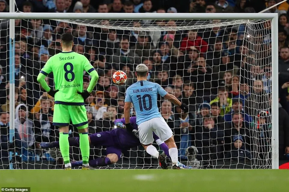Trên chấm 11 mét Aguero không bỏ lỡ cơ hội mở tỷ số cho Man. City.