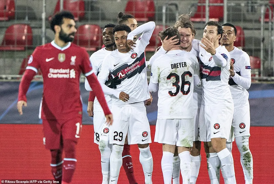 Salah mở điểm nhưng Liverpool vẫn bị Midtjylland bắt kịp. ẢNH: GETTY