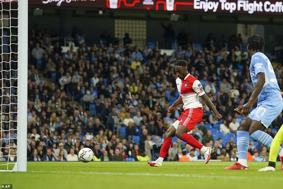 Còn trận đấu tại sân Etihad giữa Man. City và Wycombe Wanderers, đội khách dù được đánh giá yếu hơn rất nhiều nhưng lại có bàn thắng mở tỷ số ở phút 22 do công của tiền đạo Hanlan. Từ tình huống phạt góc bóng được các hậu vệ Man. City phá ra, một cầu thủ của Wycombe băng vào dứt điểm đưa bóng chạm người hậu vệ Man. City tìm đến vị trí của tiền đạo Hanlan và cầu thủ số 18 tung cú sút chéo góc để đưa Wycombe dẫn trước 1-0.