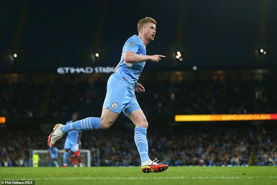 de Bruyne, Mahrez và Foden cùng ghi bàn giúp Man. City khép lại hiệp một khi dẫn trước đối thủ 3-1. Ảnh: REX.