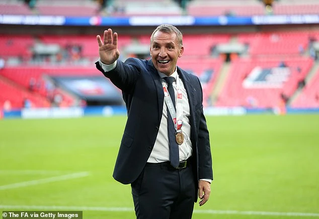 HLV Brendan Rodgers của Leicester City vui mừng sau khi giành Community Shield Cup. ẢNH: GETTY