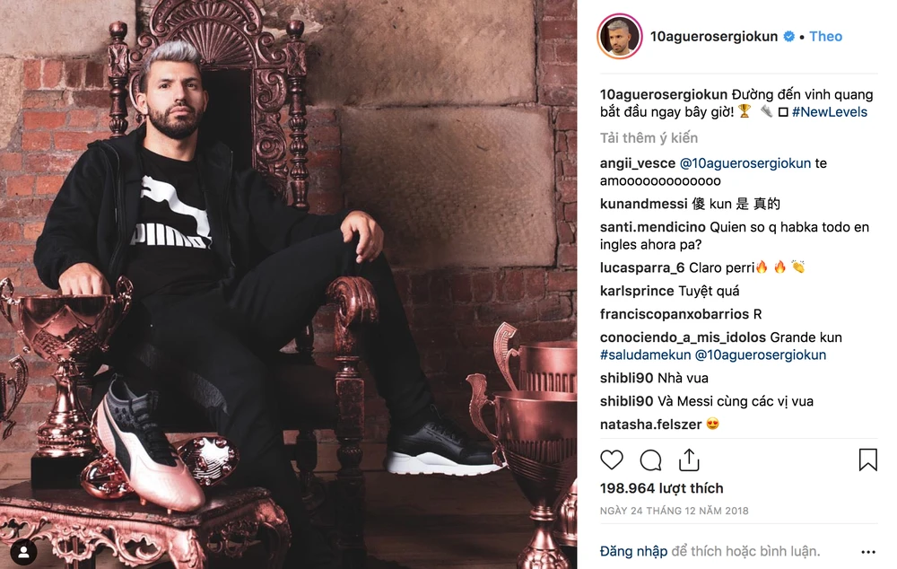 "Cây săn bàn" Sergio Aguero hiện đang làm đại diện cá nhân cho thương hiệu Puma.