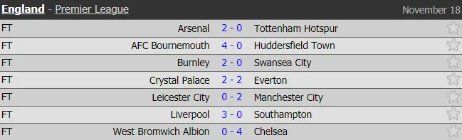 Trong khi đó, Liverpool cũng có trận thắng đậm 3-0 trên sân nhà trước Southampton. Các bàn thắng của Liverpool được ghi do công của Salah (cú đúp) và Coutinho.