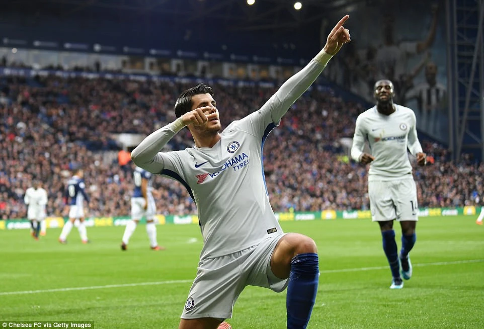 Morata ăn mừng bàn thắng ghi cho Chelsea.