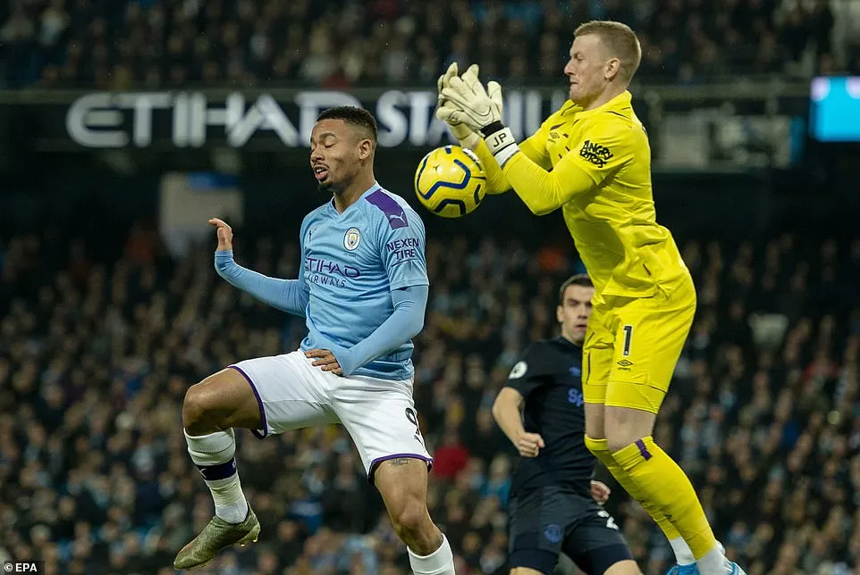 Thủ môn Pickford thi đấu xuất sắc để giúp Everton cầm chân Man. City trong 45 phút đầu tiên.