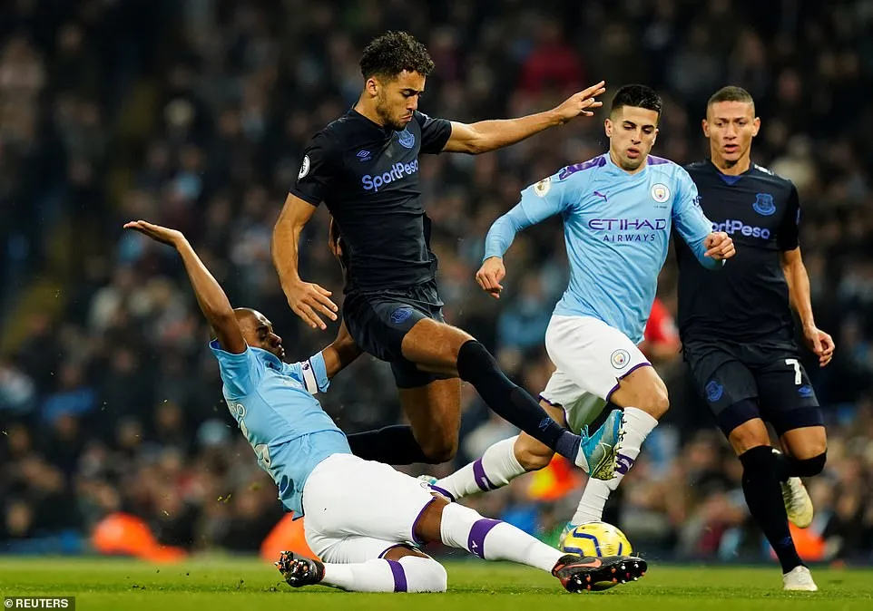 Với lối chơi chặt chẽ, cùng với việc có trong đội hình người gác đền số một tuyển Anh là Pickford, Everton hoàn thành mục tiêu cầm chân Man. City trong hiệp 1 với kết quả hòa 0-0.