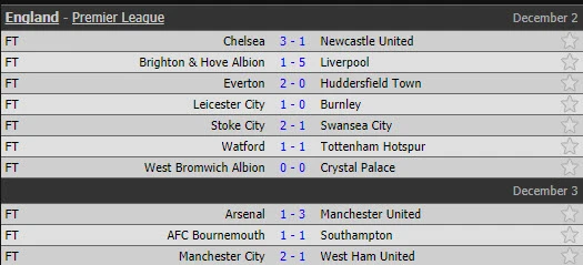 Với kết quả này, sau vòng 15 Premier League, Man. City vẫn vững vàng ở ngôi đầu bảng với 43 điểm, họ hơn MU 8 điểm và hơn đội xếp thứ ba Chelsea đến 11 điểm.