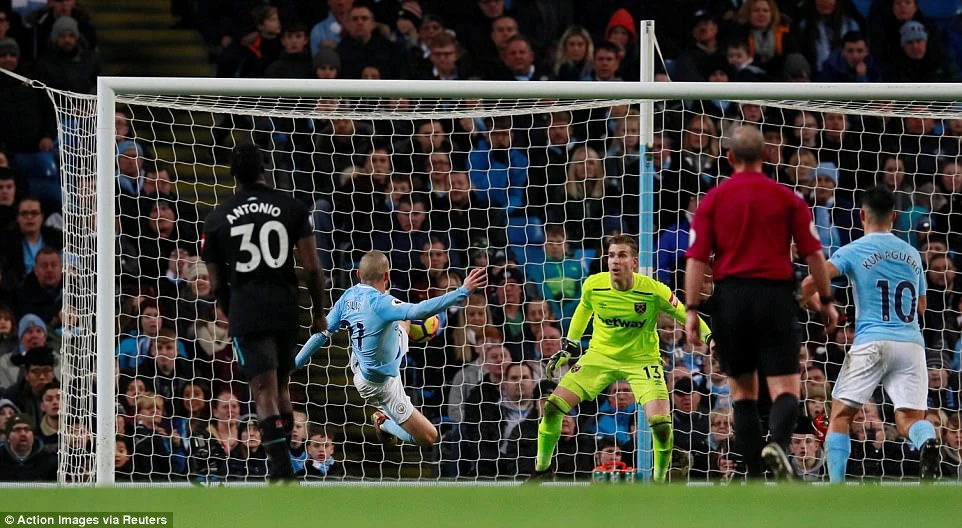 Phút 83, De Bruyne tung đường chuyền sát thủ loại bỏ cả hàng thủ West Ham, David Silva cố rướn người dùng chân đưa bóng vào lưới Adrian ghi bàn ấn định chiến thắng 2-1 cho Man. City.