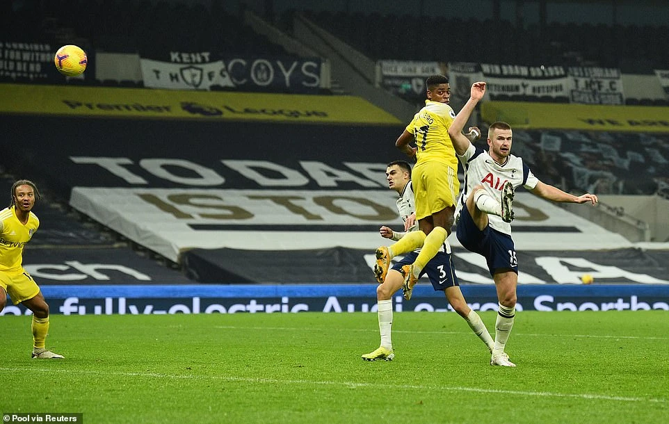 Harry Kane mở tỷ số cho Tottenham bằng tình huống bay người đánh đầu cận thành. Ảnh: AP.