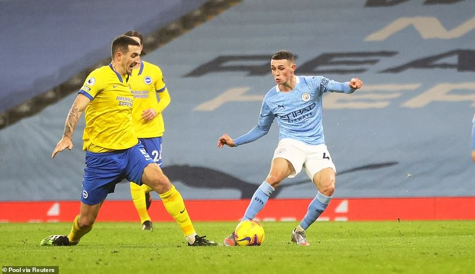 Sau khi dễ dàng đánh bại Birmingham với tỷ số 3-0 tại FA Cup, Man. City thoải mái trở về “đường đua” Premier League khi chỉ phải tiếp đón Brighton tại vòng 18. Trong trận đấu này, mặc dù HLV Pep không sử dụng một cầu thủ tiền đạo nào, nhưng “Man Xanh” vẫn tạo sức ép khủng khiếp lên Brighton khi có được 71% thời lượng kiểm soát bóng trong hiệp một.