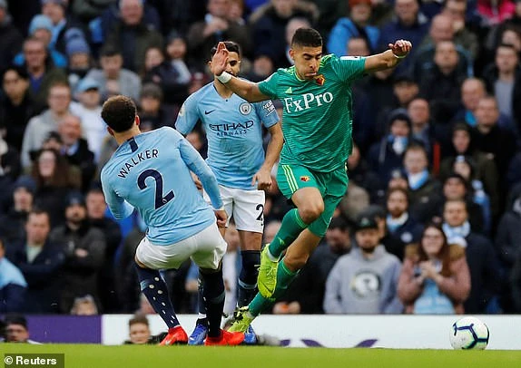 Hậu vệ Watford thi đấu tập trung khiến Man. City bó tay trong việc tìm bàn thắng ở hiệp một.
