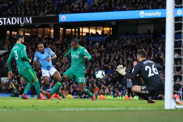 Thủng lưới hai bàn hệ thống phòng ngự của Watford cũng trở nên tan nát. Phút 60 Sterling tiếp tục bùng nổ để ghi tên mình lên bảng điện tử giúp Man. City vươn lên dẫn 3-0.