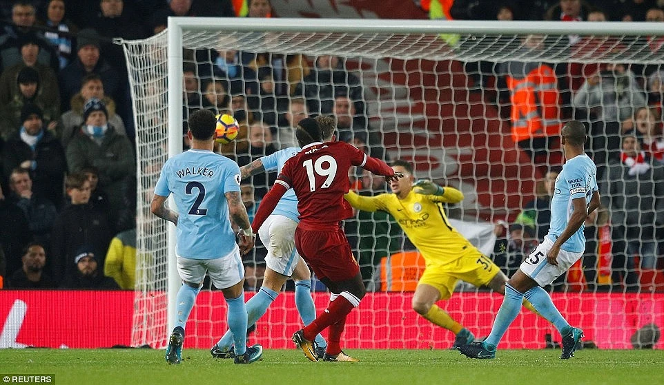 Sau hai pha bỏ lỡ cơ hội, Liverpool có liền ba bàn thắng đầy bất ngờ chỉ trong vòng 9 phút khiến Man City choáng váng. Xen giữa ba bàn thắng này còn có cú sút đập cột dọc của Mane.