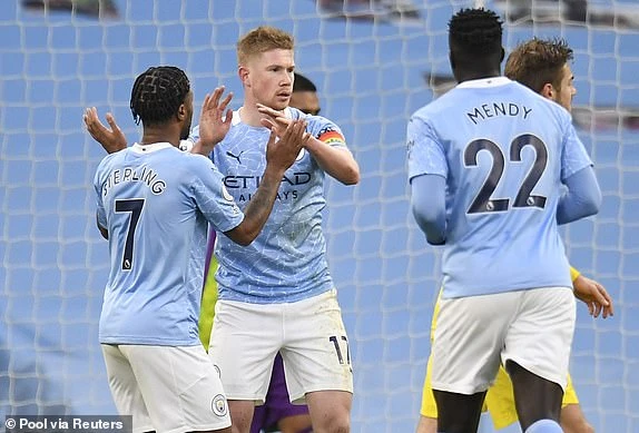 Bàn thắng: Sterling (5'), De Bruyne (26', pen)