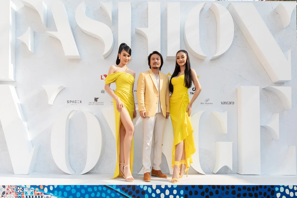 Sánh đôi cùng cô nàng là tổng đạo diễn Hoàng Nhật Nam và Á hậu Phương Anh. Á hậu Phương Anh là một trong ba Đại sứ của Fashion Voyage.
