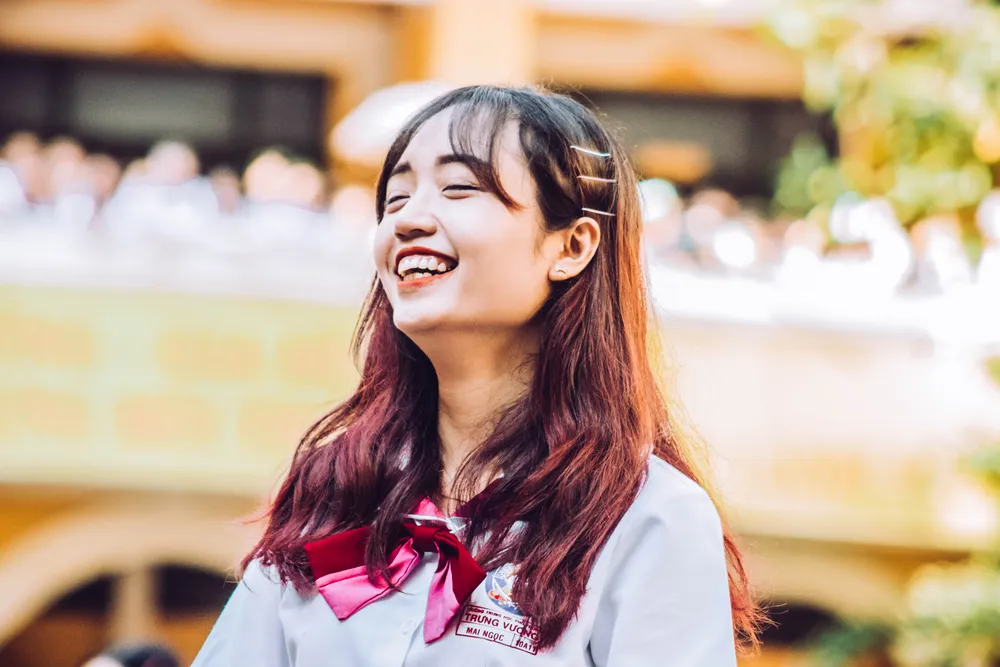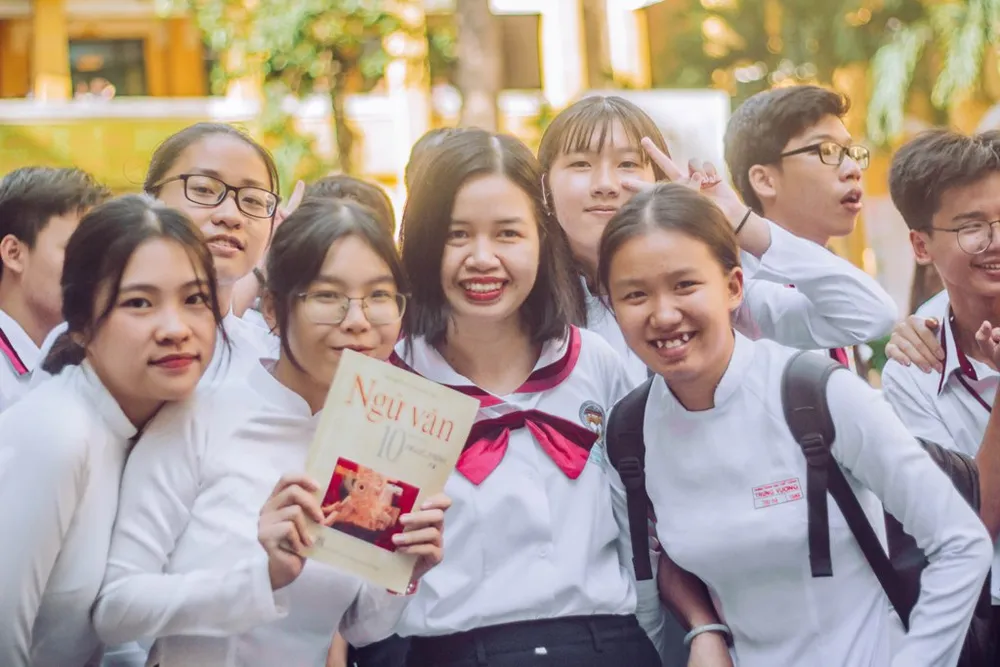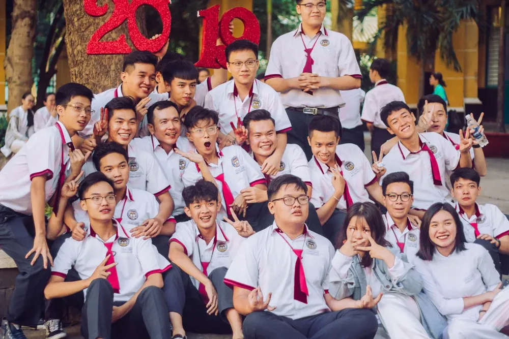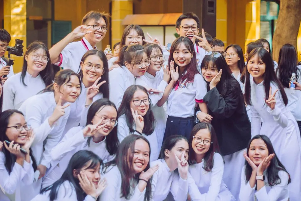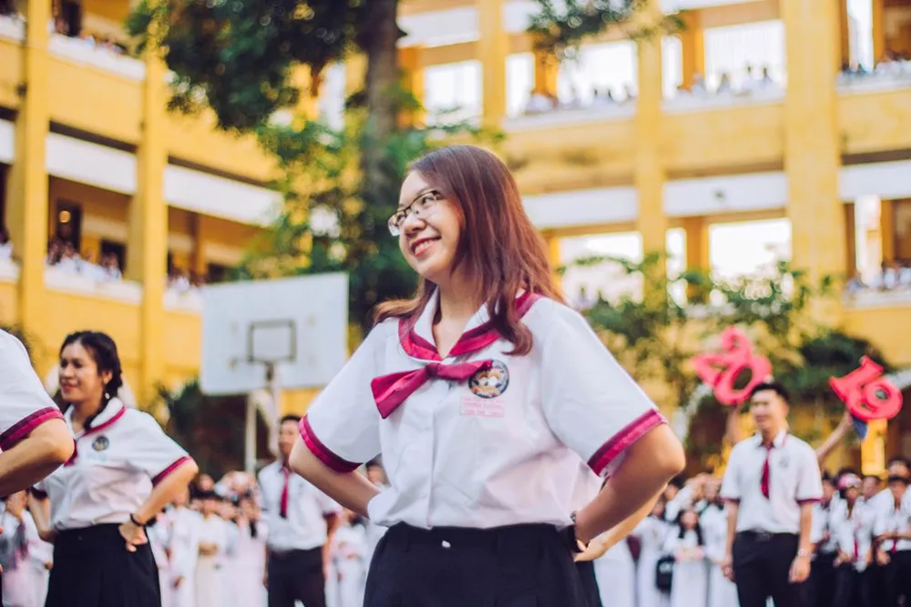 Các thầy cô giáo xuất hiện trong sự ngỡ ngàng của học trò với đồng phục vô cùng dễ thương của học sinh Trưng Vương. Ảnh: NTCC