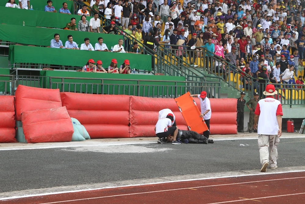 Một tay đua đã gặp sự cố khá nặng khi gần về đến đích.