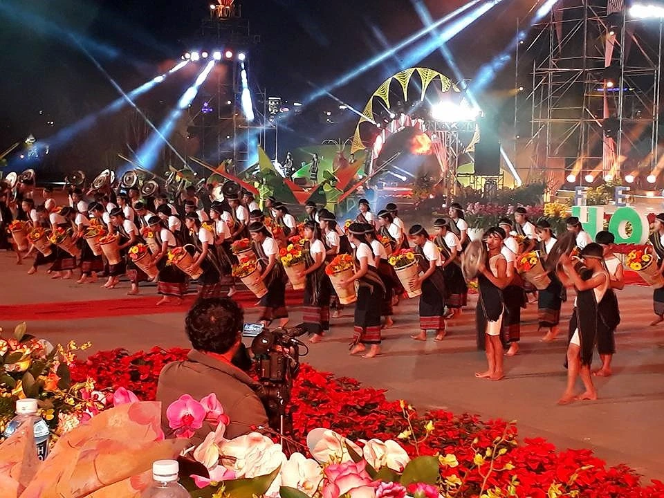 Đêm văn nghệ khai mạc festival đã diễn ra lộng lẫy, hoành tráng, ấn tượng về quy mô và sự đầu tư công phu với hàng trăm nghệ sĩ tham gia, cảnh trí, phục trang kỳ công, phong phú.
