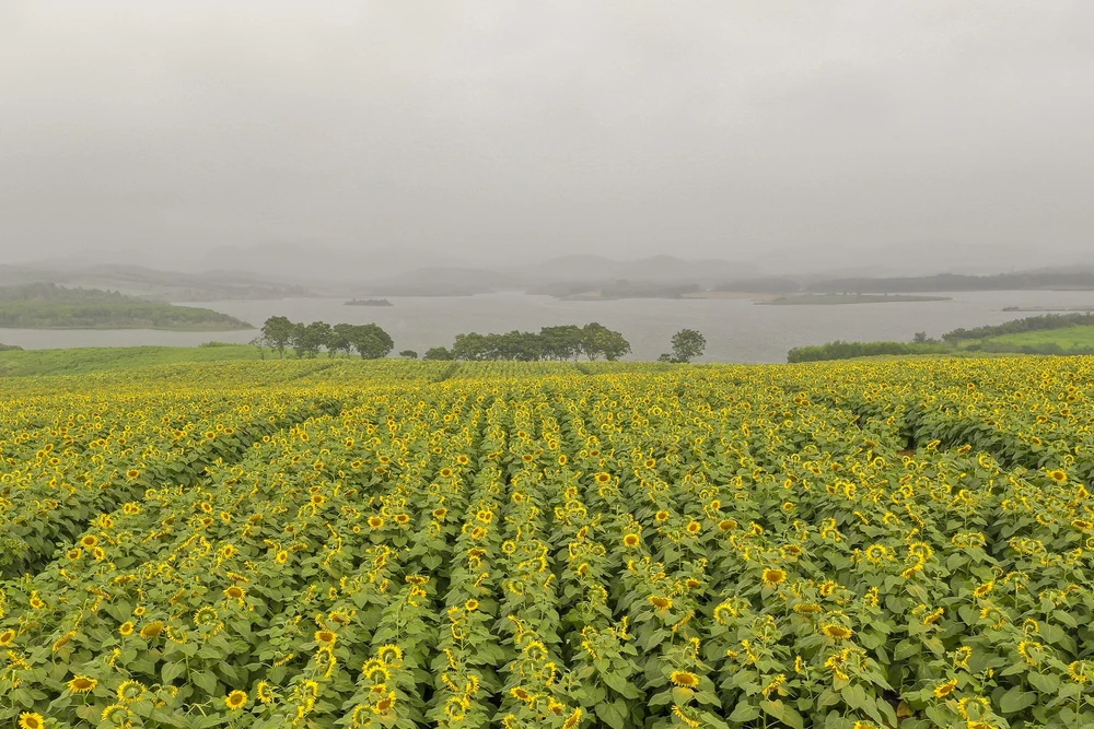 Hàng triệu bông hoa trên cánh đồng đang ngậm những giọt sương, giọt nắng để sẵn sàng bung nở phủ một màu vàng rực sáng cả một khoảng trời chạy thẳng xuống khu vực hồ sông Sào.