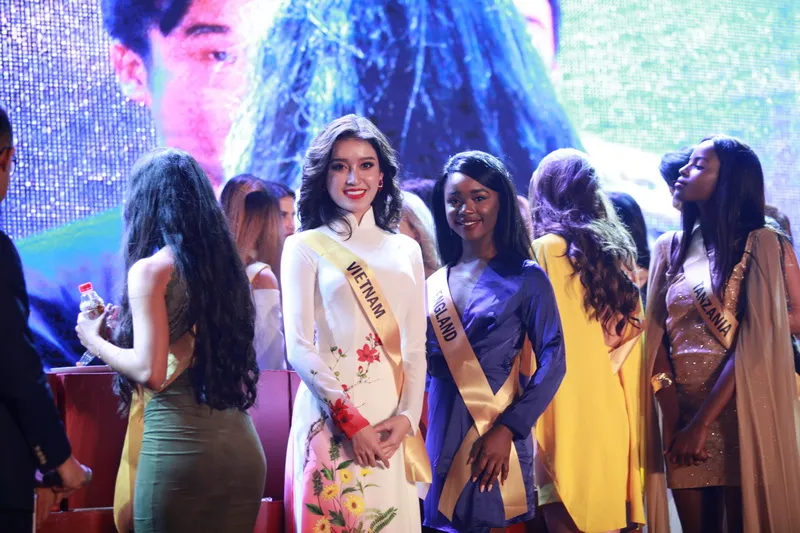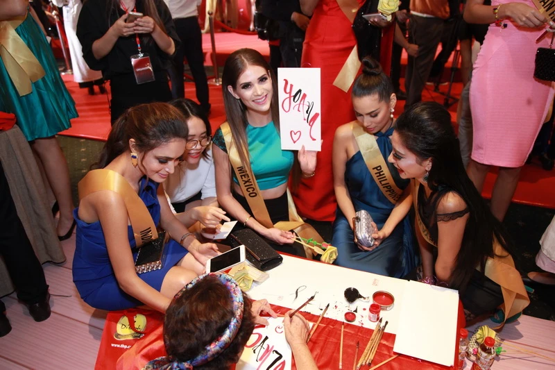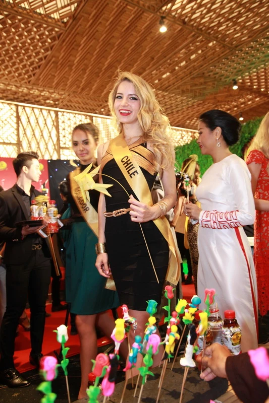 Tại đây, trong khung cảnh mang đậm màu sắc Việt Nam với các gian hàng nặn tò he, thắt đồ chơi bằng lá dừa, viết thư pháp và gian hàng guốc mộc... các hoa hậu đã hào hứng xin chữ thư pháp tên mình, chờ nhận những bông hoa tò he, bông hoa lá dừa, nhận những đôi guốc mộc. Đại diện sắc đẹp của mỗi nước tại cuộc thi đã cùng ký tên mình lên một bức tranh với ước vọng cầu mong hòa bình cho thế giới. Đại diện cho nhan sắc Việt trong đêm gala là á hậu Huyền My.