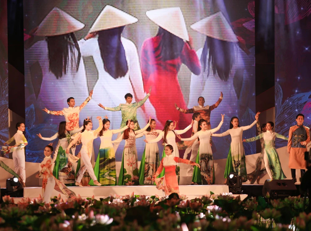 Sau phát biểu của ông Trần Vĩnh Tuyến, lễ hội đã diễn ra sang trọng, hoành tráng với chương trình biểu diễn "Tinh hoa áo dài Việt " trên sân khấu dài hơn 100m uốn lượn, chính giữa trồng sen thật đậm nét Việt.