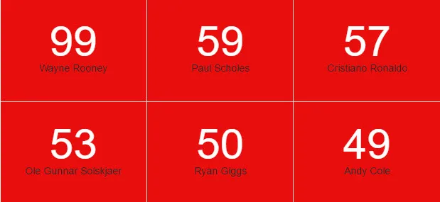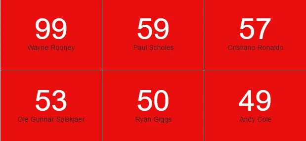 Để làm được điều đó, M.U đã mất 8.628 ngày. Theo thống kê, trên sân nhà Old Trafford, Wayne Rooney chính là cầu thủ ghi nhiều bàn thắng nhất cho MU với 99 bàn thắng. Xếp ở các vị trí tiếp theo lần lượt là Paul Scholes (59 bàn), Cristiano Ronaldo (57 bàn), Ole Gunna Solskjaer (55 bàn), Ryan Giggs (50 bàn), Andy Cole (49 bàn), Ruud van Nistelrooy (48 bàn), Eric Cantona (37 bàn), Dimitar Berbatov (34 bàn),…