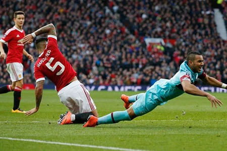 Trước đó ít phút, cũng chính Payet ngã trong vòng cấm sau pha tranh chấp với Marcos Rojo nhưng trọng tài lại không thổi phạt đền. Phút 83, thần may mắn Anthony Martial đem lại bàn gỡ hòa quý giá cho M.U sau pha đệm bóng cận thành ấn định tỉ số 1-1 cho trận đấu. Trong tình huống này, Schweinsteiger đã tác động lên thủ môn Randolph khiến thủ môn này bị ngã nhưng trọng tài vẫn công nhận bàn thắng cho M.U.