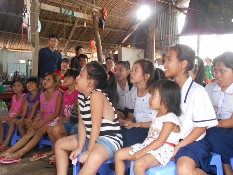Các em nhỏ rất thích thú với màn ảo thuật vì trước đây chưa từng được nhìn thấy những trò vui như vậy. Ảnh: THANH TUYỀN