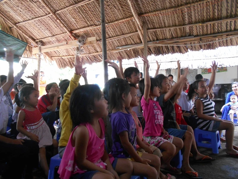Em Nguyễn Thị Ngọc Mai (học lớp 3) cùng mẹ lên đây đã hơn một năm, việc học hành của em cũng bị gián đoạn. Mai nói em thích đi học với mấy thầy, mấy cô ở đây vì nhà em không có điều kiện để đi học ở trường như các bạn khác. Ngồi xem ảo thuật, Mai ghé tai sang bạn kế bên rồi nói: “Sao trước giờ chưa thấy mấy trò này nhỉ, vui quá”.