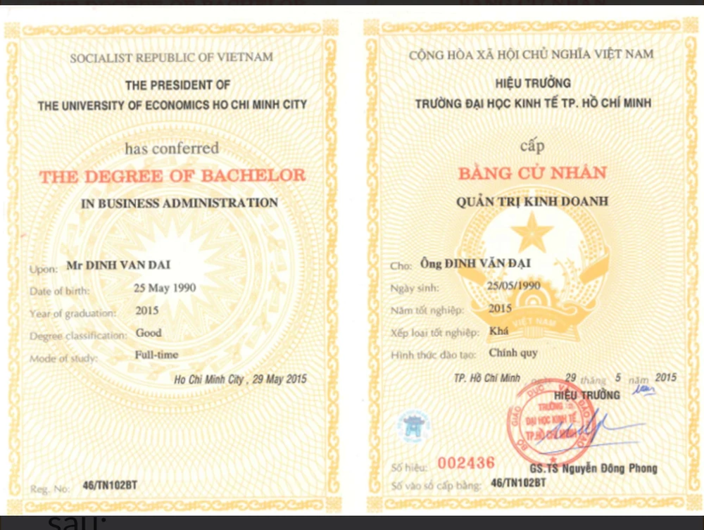 Tấm bằng đại học mà người này mang đến UBND phường Linh Tây yêu cầu sao y có phôi bằng giả. ẢNH: UBND phường Linh Tây.