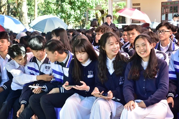 Học sinh trường THPT Bùi Thị Xuân (Đà Lạt) hào hứng tham gia sự kiện "Di sản với học đường".