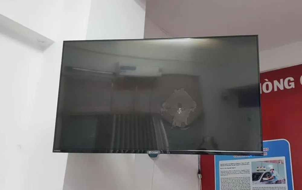 Đ đập vỡ tivi của trung tâm. Ảnh: NGUYỄN YÊN