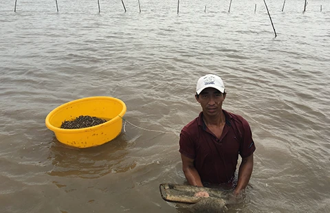 Người dân kiểm tra sò nuôi sau khi bị cướp tấn công. Ảnh: T.VŨ