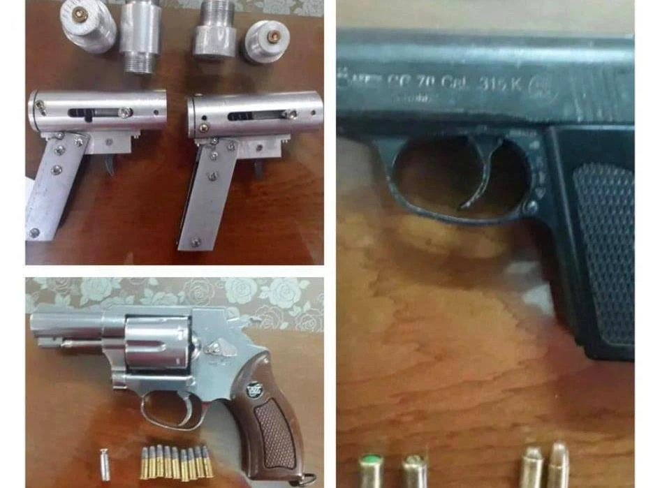 Các khẩu súng công an thu giữ khi khám xét khẩn cấp nơi ở của Nguyện.