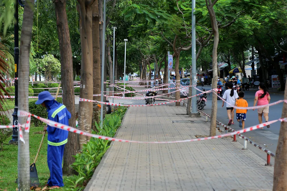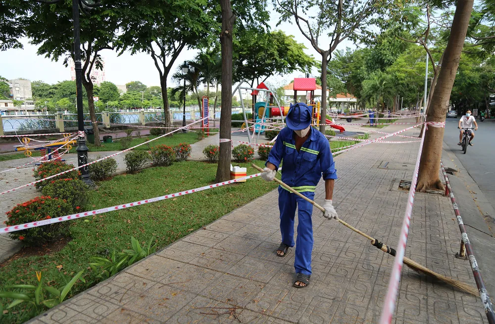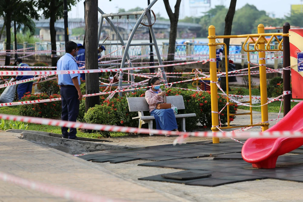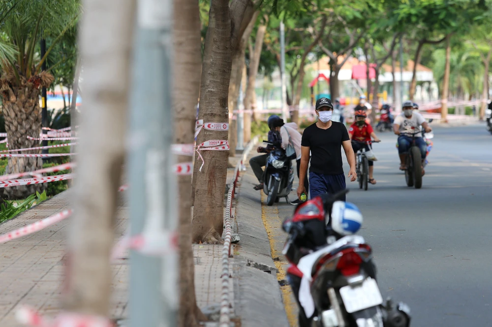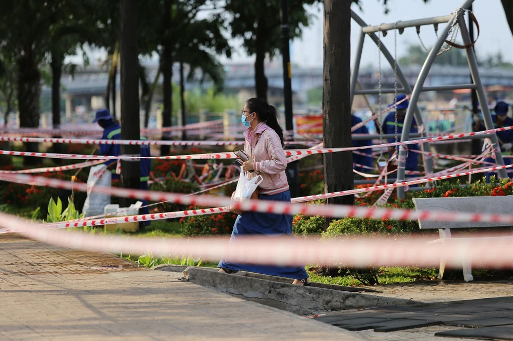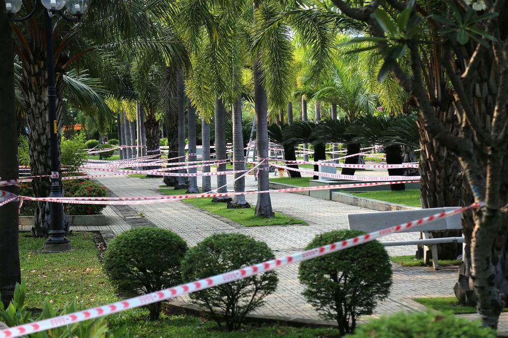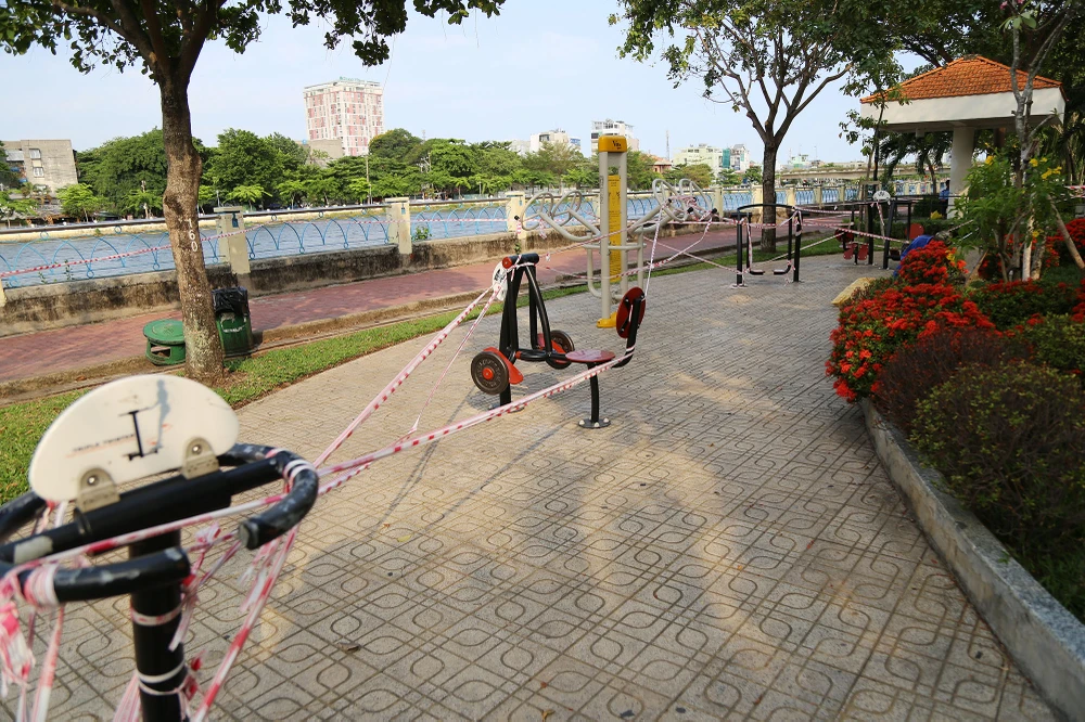 Ghi nhận tại Công viên Tầm Vu (quận Bình Thạnh), so với lượng người đông đúc như những ngày trước đây, hiện toàn bộ khu công viên đã không xuất hiện người tập thể dục, lực lượng chức năng đã dùng dây rào nhiều vòng khắp công viên.