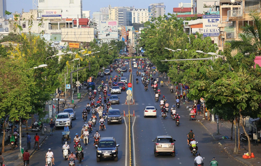 Phương tiện di chuyển đông đúc trên đường Trần Quốc Thảo (quận 3) vào giờ cao điểm.