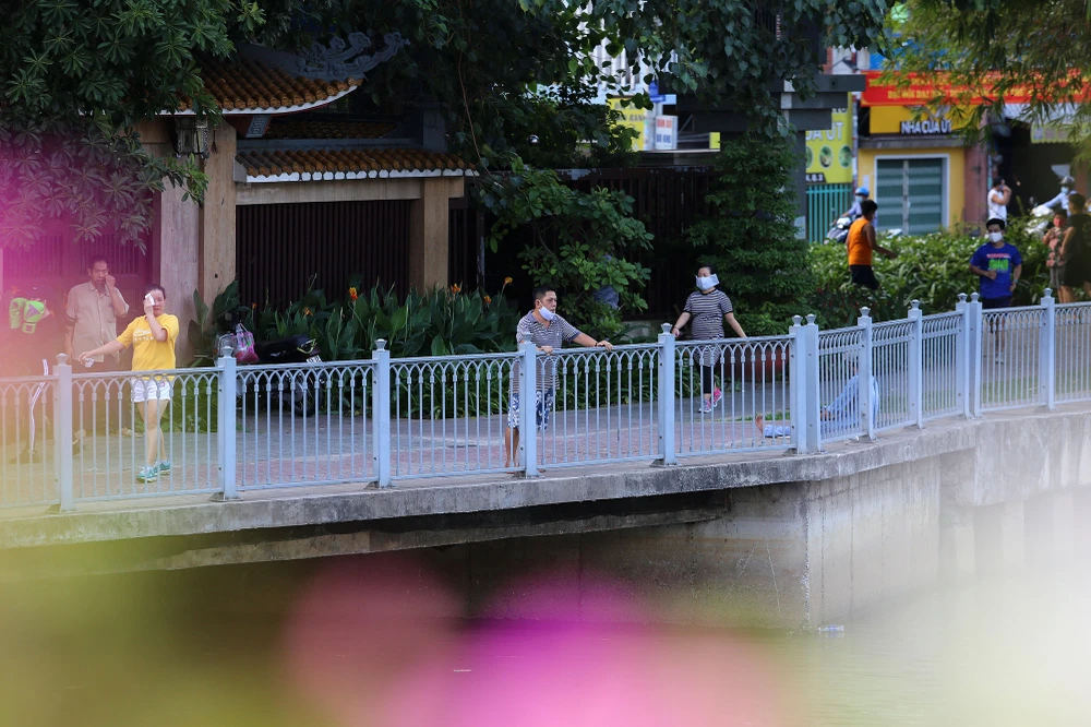 Tình trạng tương tự cũng diễn ra tại công viên dọc theo kênh Nhiêu Lộc - Thị Nghè, trong chiều 16-4, rất đông người dân kéo nhau ra bờ kênh câu cá, ngồi trò chuyện và chạy bộ.