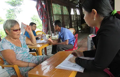 Sau cùng, những ai có vấn đề gì cần được giúp đỡ liên quan đến pháp luật thì sẽ được trợ giúp viên pháp lý hướng dẫn. Bà Nguyễn Thị Sum (65 tuổi, ấp Thới Trung) kể bà có con gái năm nay 30 tuổi, xin đăng ký kết hôn với… chồng thứ hai. “Cách nay 15 năm, nó lấy chồng và có hai đứa con nhưng không bền lâu nên hai đứa đường ai nấy đi. Cách đây 10 năm, nó lấy người khác và có thêm đứa con nữa. Giờ vợ chồng nó muốn làm giấy kết hôn. Có người nói nó phải đi làm cái giấy gì không công nhận chồng trước thì mới làm giấy kết hôn với chồng sau được, mà thằng chồng trước đi đâu mất biệt, có biết nó ở đâu đâu…” - bà Sum nói.