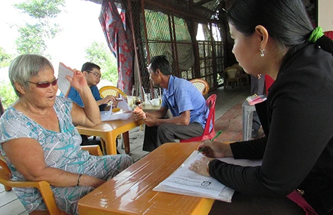 Bà Nguyễn Thị Sum được trợ giúp viên pháp lý tư vấn các thắc mắc liên quan đến việc kết hôn của… con gái bà. Ảnh: N.NAM