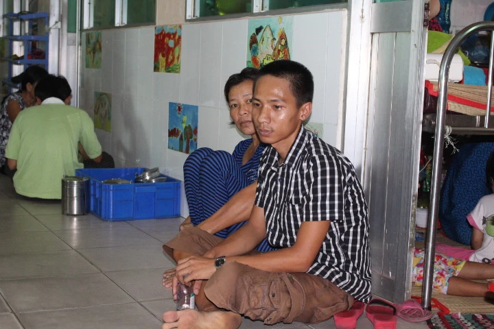 Anh Gí nghẹn ngào cho biết: “Hiện tại, em và vợ cùng với má vợ vẫn ăn những suất cơm từ thiện sống qua ngày. Tối đến, vợ em ngủ dưới gầm giường bệnh chăm con. Còn em và má vợ thì ra hành lang nằm cùng những người khác”.