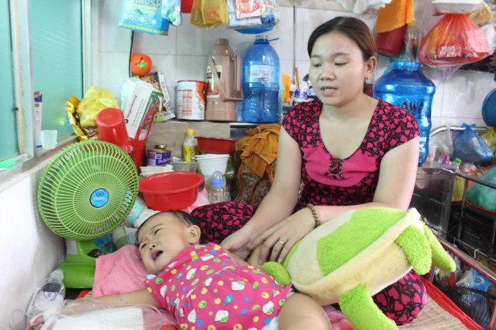 Lúc chúng tôi gặp anh chị, anh Gí vừa đi đóng viện phí tại bệnh viện về. Anh buồn rầu cho hay: “Em vừa mới đóng hơn 2 triệu tiền vô thuốc cho con. Giá mà em được chết thay cho con”.