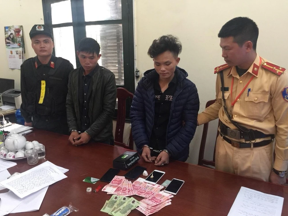Tại trụ cơ quan công an, Ú và Vảng khai nhận số tang vật trên là heroin. Ngoài ra, cảnh sát còn thu giữ bốn điện thoại di động, 2.000 Nhân dân tệ và 300.000 đồng.