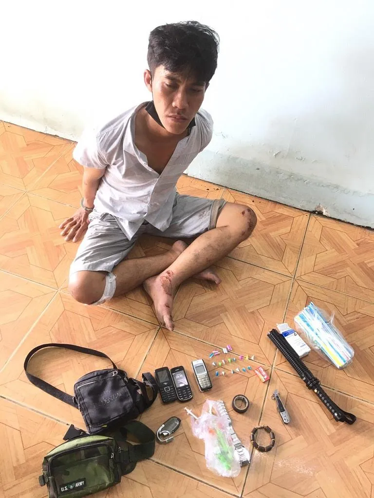 Qua kiểm tra, lực lượng công an phát hiện Hùng mang một lượng lớn ma túy trong người để sử dụng. Ngoài ra, có 14 đoạn ống nhựa chứa heroin, 2 chiếc ĐTDĐ; 1 cây dao lam, 1 miếng gạc kích thước 5x10, ống hút, đèn pin, hộp giấy...