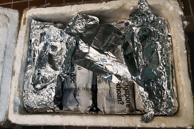 490 quả trứng được đặt trong hai thùng xốp, với tổng trọng lượng là 78,4 kg. Ảnh: AVA