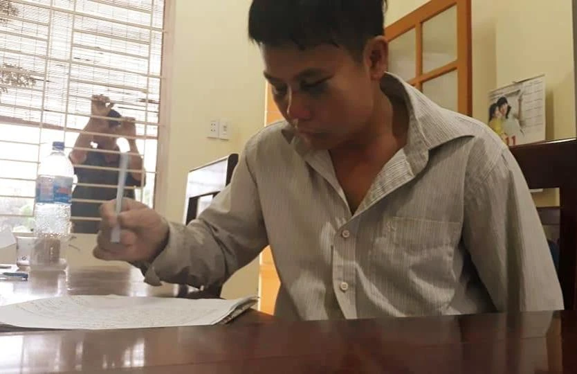 Anh Tiếp cùng tang vật được đưa đến trụ sở công an xã lập biên bản để bàn giao cho công an huyện Anh Sơn.