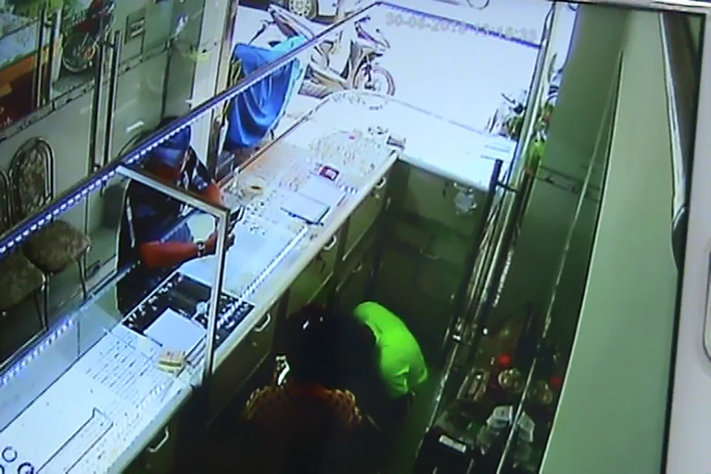 Trước đó, người đàn ông này đã đến một tiệm vàng gần đó đặt mua nhiều vàng và yêu cầu giao đến nhà nhưng không được đồng ý. Ảnh cắt từ clip.